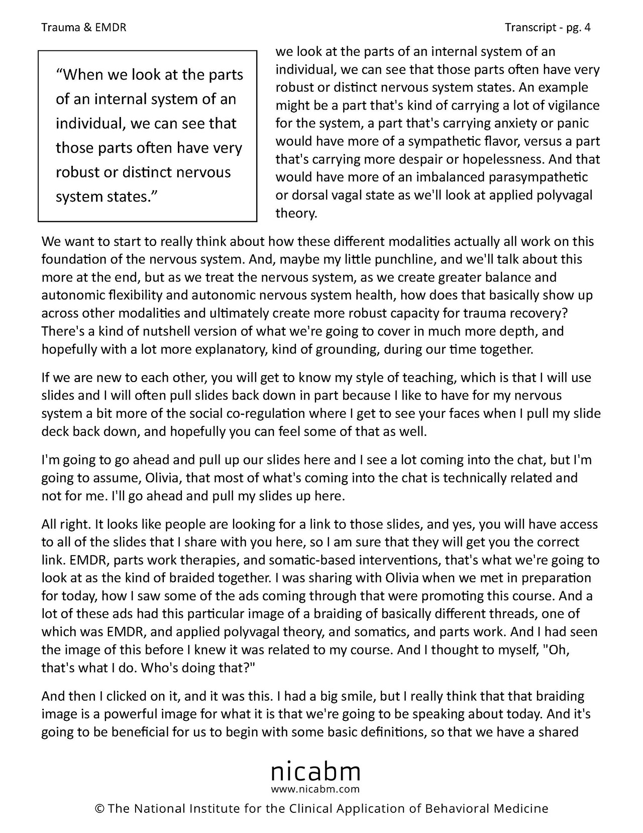“Thank you, NICABM, for taking the direction you are taking and providing a viewpoint that is humane, holistic, and scientific at the same time.”