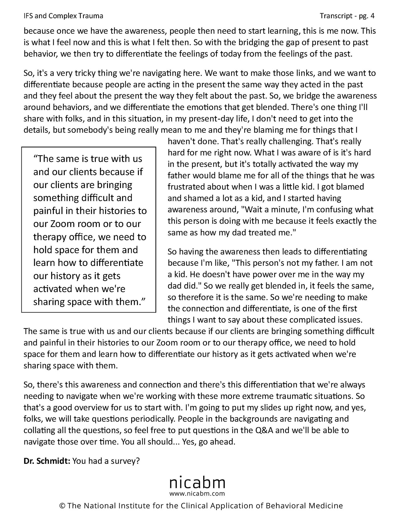 - How a parts approach can help you manage countertransference when treating complex trauma